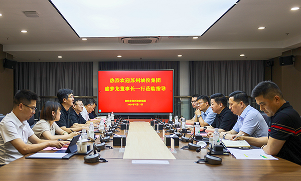 7月17日下午,蘇州城投集團(tuán)黨委書記、董事長盛夢龍一行到集團(tuán)考察,集團(tuán)黨委書記、董事長董毅熱情接待。2024-07-17