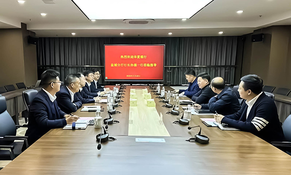 11月22日,集團黨委副書記、總經理董毅會見華夏銀行鹽城分行行長孫強一行,雙方就融資合作等事宜進行了深入洽談,集團黨委委員、總會計師季培茂,華夏銀行鹽城分行副行長金安湖參加。2023-11-23 -